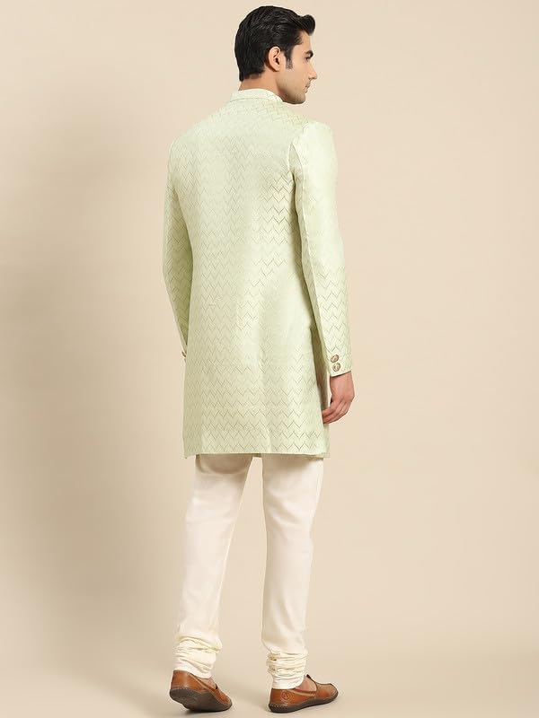 - REGULAR FIT FOR ALL BODY TYPES – This Indian wedding sherwani for men is tailored for a regular fit that suits all body types. Sizes available: S(38) to XL(44). Please refer to the size chart before ordering. Package contains sherwani and pajama for men.